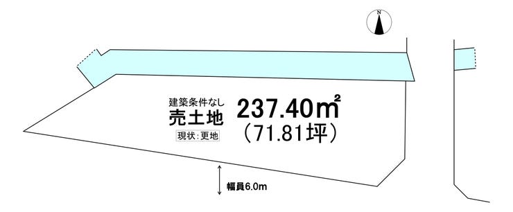 | 土地面積 | 公237.4㎡(71.81坪) | 接道 | 南側(公道)幅 約6.0m 間口 約33.00m 東側(公道)幅 約4.8m 間口 約10.00m |